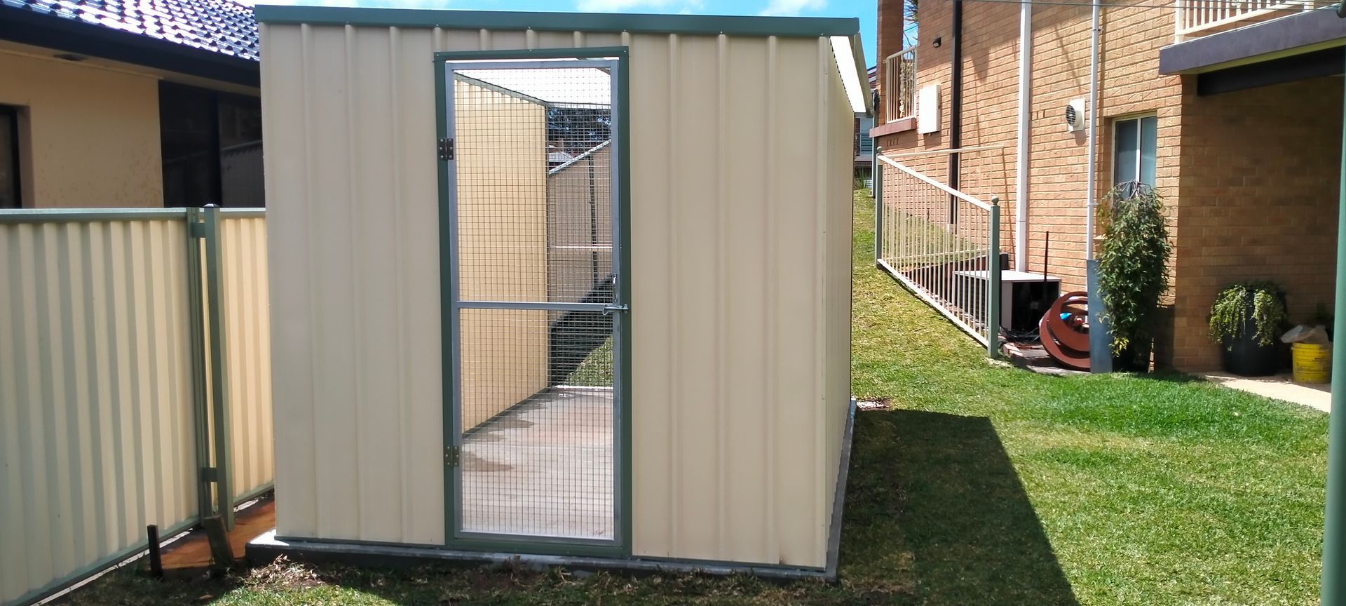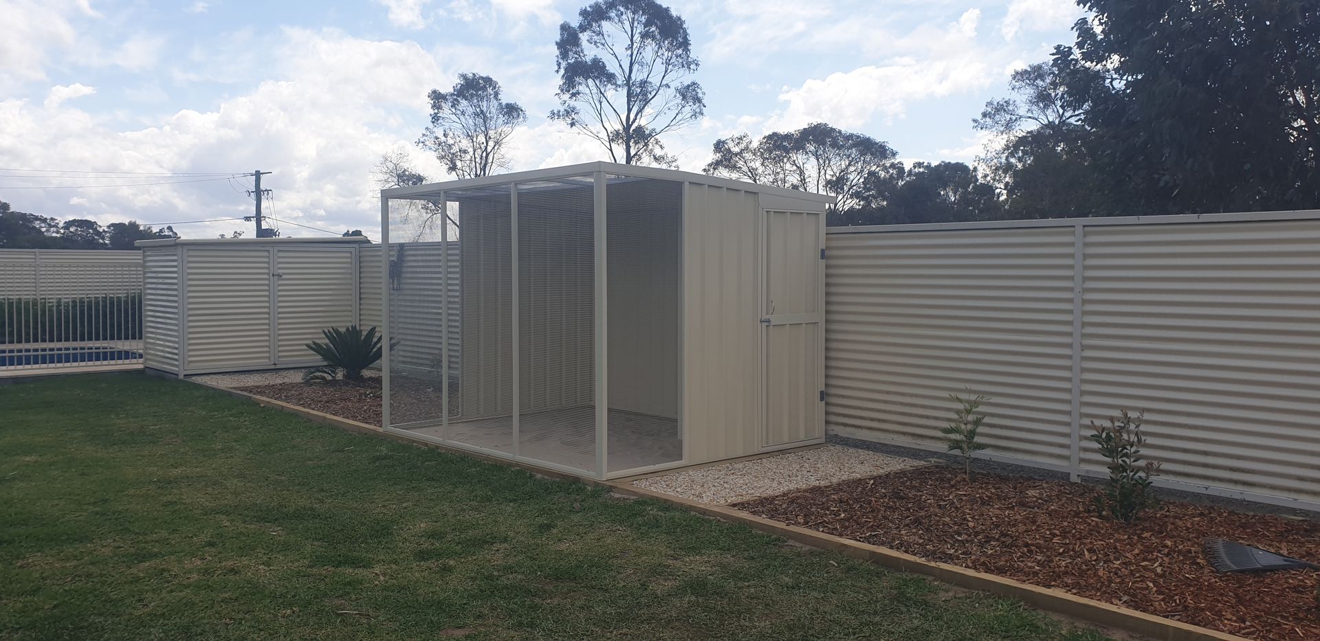 Not all birds are the same. Nor are their caging requirements. Different species of birds require different shelter sizes, flight lengths and mesh size. At Hunter Shed Masters we listen to your requests and custom design aviaries to suit, whether it be a single aviary or banks or aviaries. Perfect for owners and breeders alike. We also offer a number of options to make life easier for both you and your birds. These include safety entrances, revolving sliding feed trays (a must for macaws) extra height options, perches and insulation.